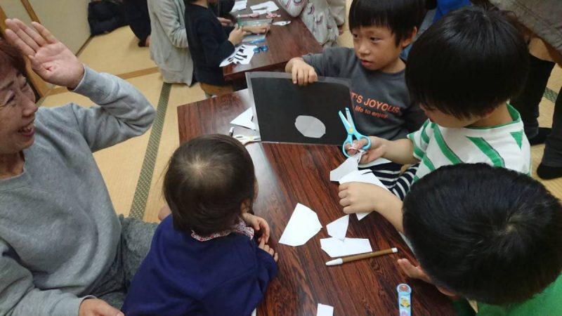 下書きをしないで、イメージだけで形を切り抜く紙切りクイズで盛り上がりました。宿題を頑張る子もいましたよ![]()