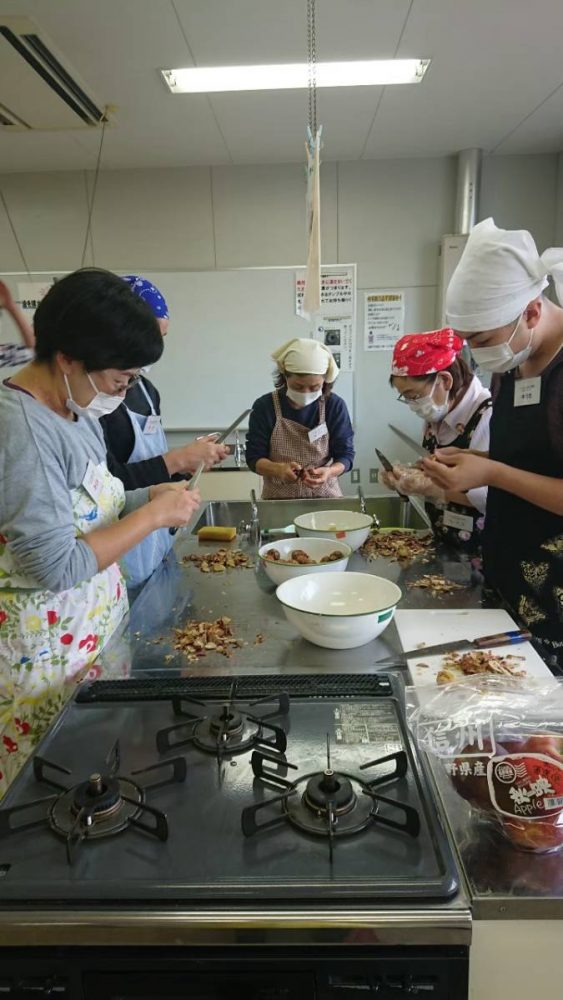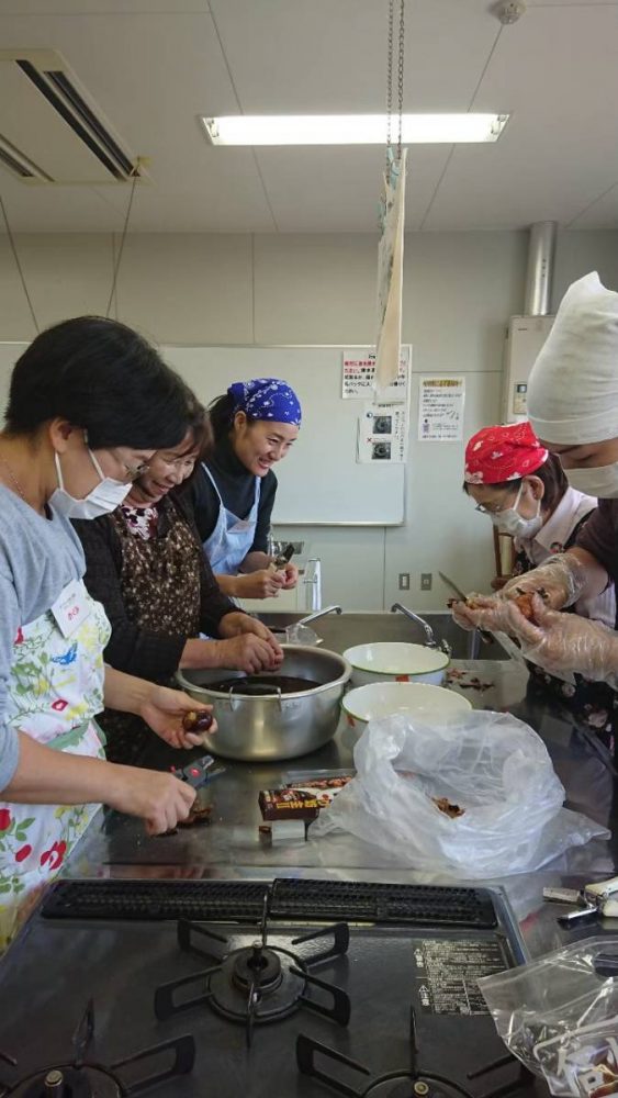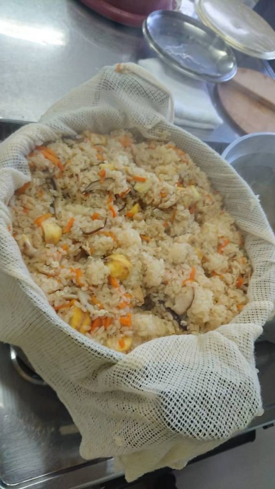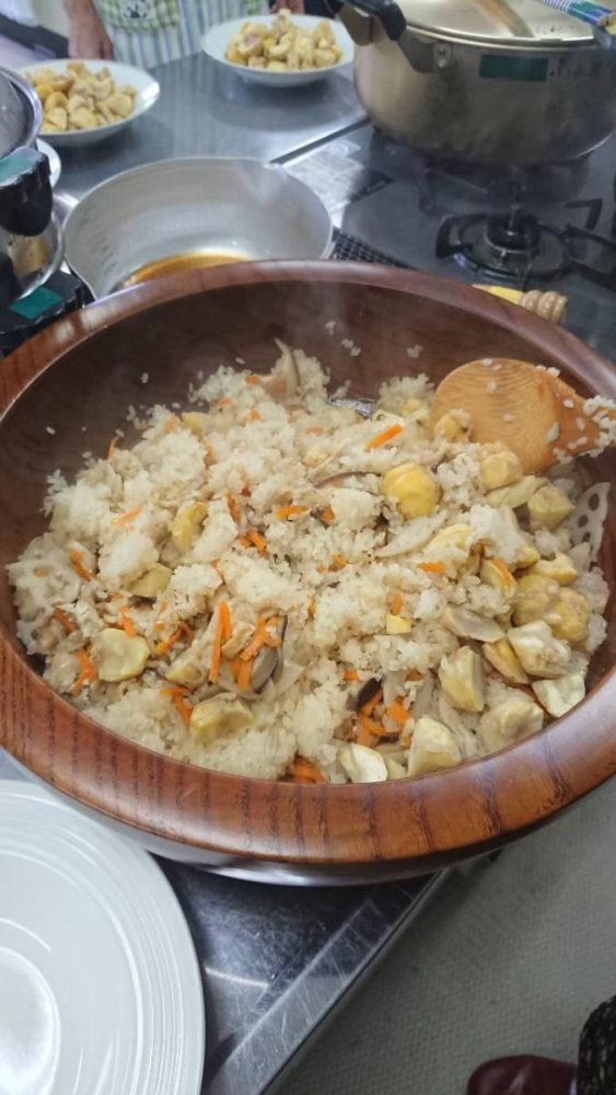 近藤商店 大黒製パン 北村 長谷川 フードバンク長岡 その他個人で食材を寄付してくれた方々今月は栗をご寄付頂いたので、本格的な「栗おこわ」です。ボランティア7名による栗剥き部隊を急きょ結成し、ひたすら剥き剥き、がんばりました!蒸し器を4つ使ってもち米を20分蒸し、しとをうち、具材を混ぜて、さらに15分蒸しました。ふっくらモチモチの美味しいおこわでしたね!大人気だったブロッコリーのおかかごま和えや汁碗、大根ビーンズサラダと野菜もたっぷり食べましたね