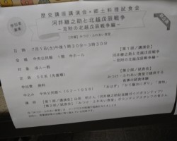 さきにご案内していた、歴史講座講演会と郷土料理試食会には、定員を超える大勢の参加者をお迎えし、盛況のうち無事終了することができました。