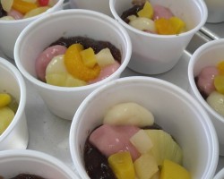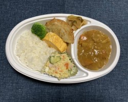 〇カレー 〇津餃子 〇ポテトサラダ 〇ブロッコリー 〇玉子焼き 〇福神漬 〇白玉あんみつ ○コッぺサンド  ●提供食数ボランティアスタッフを含め合計「77食」でした