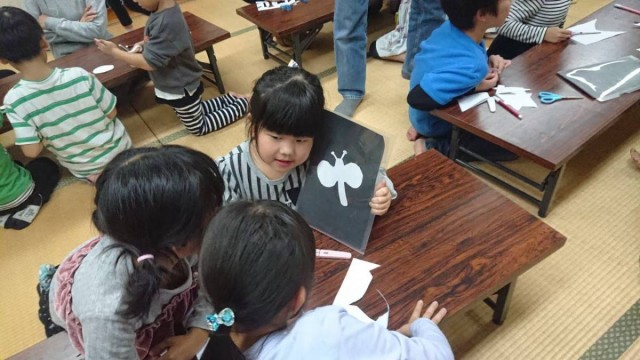下書きをしないで、イメージだけで形を切り抜く紙切りクイズで盛り上がりました。宿題を頑張る子もいましたよ![]()
