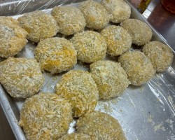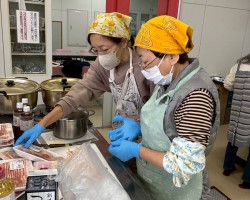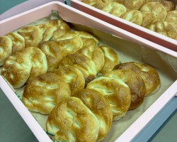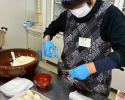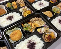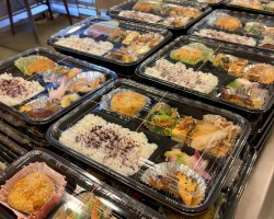 11月のお弁当は、見附産新米ご飯をはじめ、手作りコロッケに大学芋、豚バラ肉と大根のこっくり煮にお漬物、デザートにもち米とうるち米でつくったおはぎなど、24世帯60食をお渡しすることができました。
