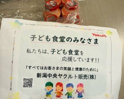 新潟中央ヤクルト販売㈱様、フードバンクみつけ様をはじめ、ご寄付を戴いた皆様、そして、調理ボランティアの皆さん、本当に有難うございました。