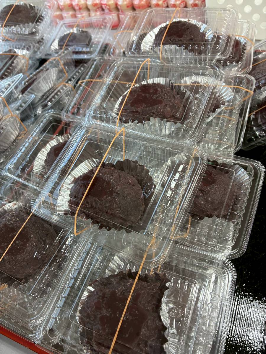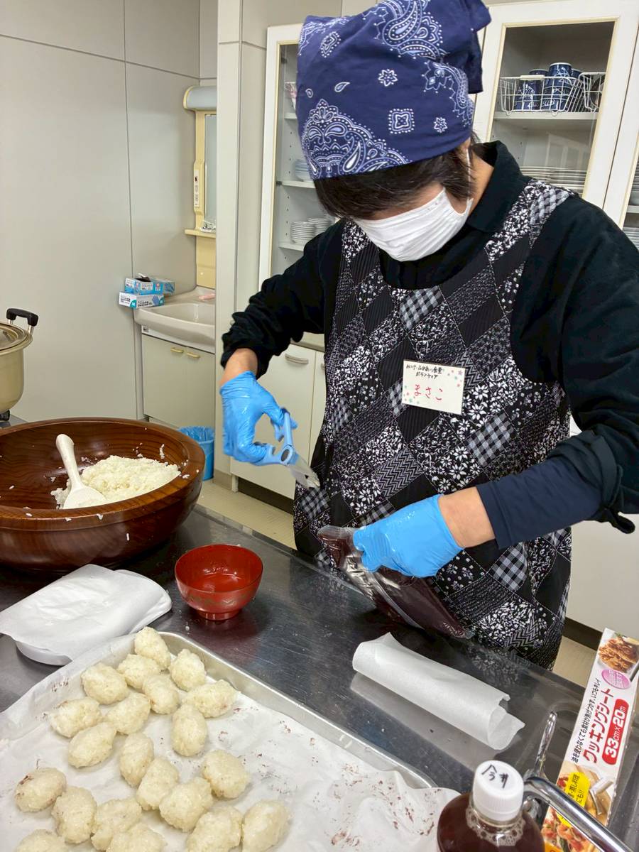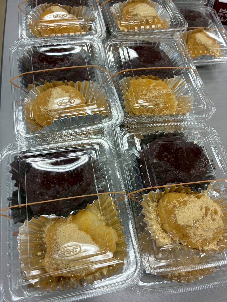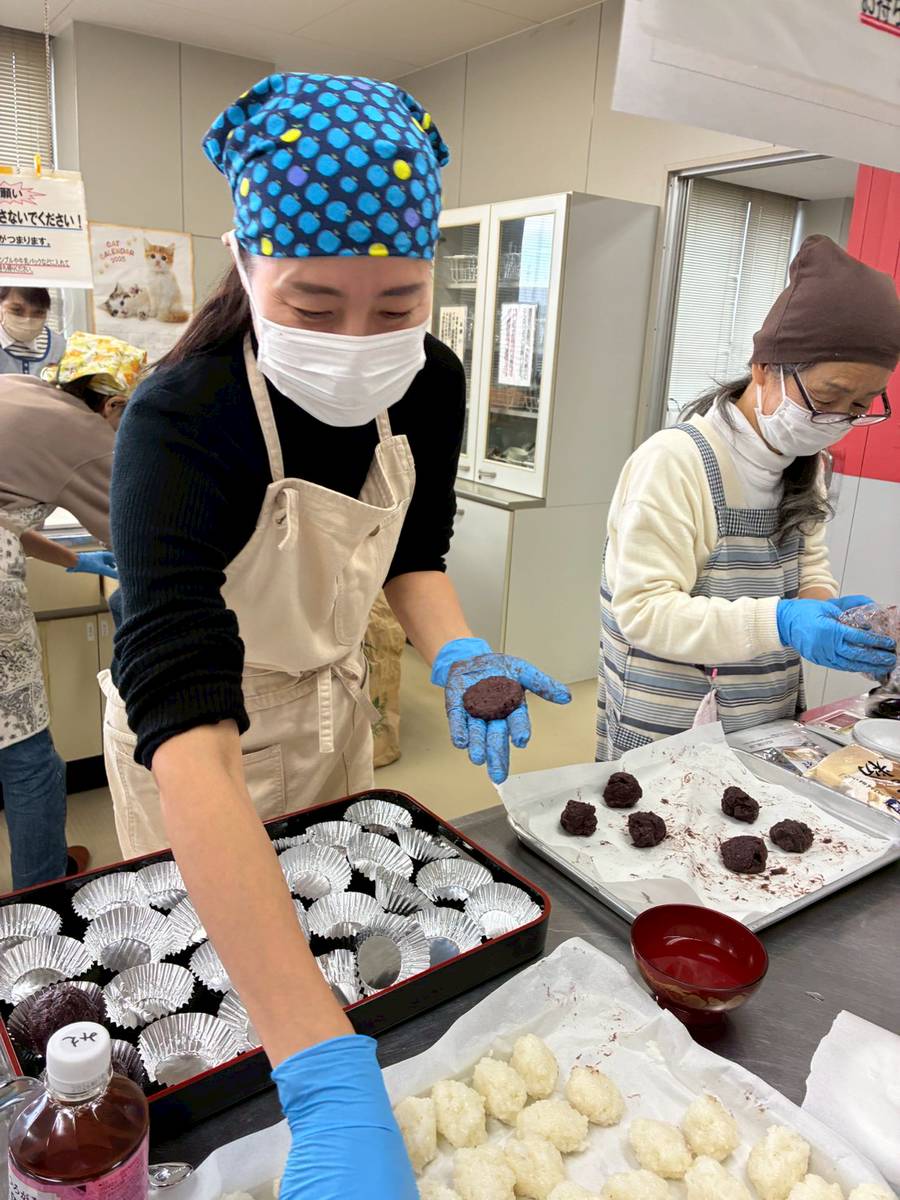 11月のお弁当は、見附産新米ご飯をはじめ、手作りコロッケに大学芋、豚バラ肉と大根のこっくり煮にお漬物、デザートにもち米とうるち米でつくったおはぎなど、24世帯60食をお渡しすることができました。