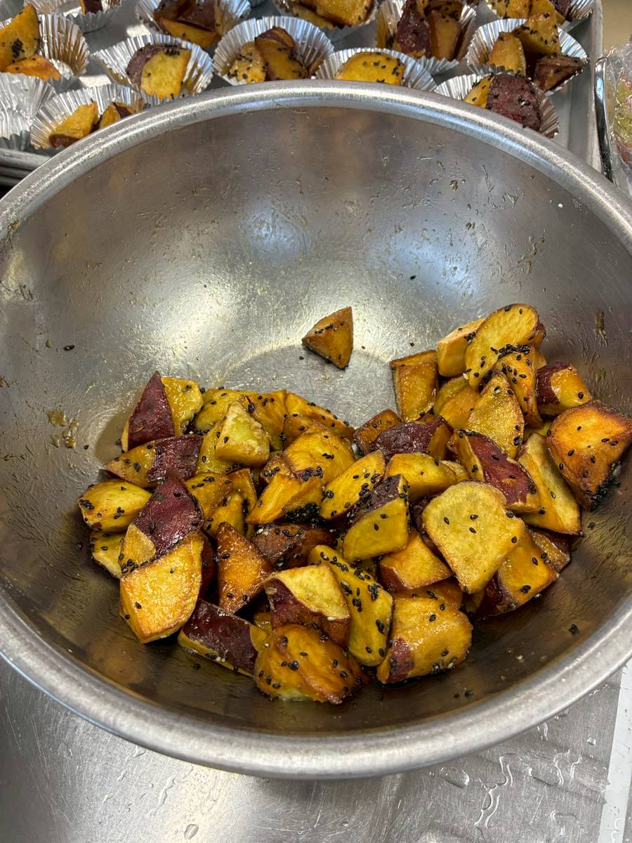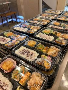 新米ご飯にはゆかりを、漬物は白菜と赤大根をご用意しました。ご覧のように、お弁当のボリュームにみなさん驚いておられました。寄付していただいたお米、さつまいもや、大根など旬の美味しさがぎっしり詰まった秋の収穫お弁当でした。調理ボランティアさんのまごころのこもった手作りお弁当。申し込みをされ当選した皆さんが、幸せそうにお弁当をお持ち帰りいただく姿を見ると、地域・こども食堂をやってて、本当に良かったと思います。豊かな食事は、心も身体も健康にしてくれますね。(^^)