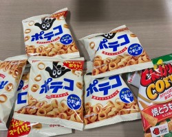 お弁当と一緒に、「フ-ドバンクみつけ」さん提供の、たくさんのお菓子を添えてお渡ししましたよ。