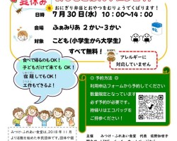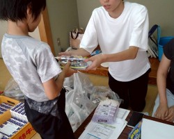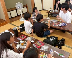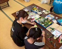 会場のふぁみりあまで、たった一人でバスに乗って来た男の子がいました。お母さんから「絶対に、楽しいから行ってきてごらん!」と言われて、バスの時刻表を片手に来たとのことでした。お兄さんやお姉さん達とゲームをしたり、工作をして、一緒にお弁当食べながら、おしゃべりをしていたのが印象に残ります。短い時間でしたが、その子はバスに間に合うよう帰って行きました。(ほんと頼もしいわ)