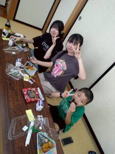 会場のふぁみりあまで、たった一人でバスに乗って来た男の子がいました。お母さんから「絶対に、楽しいから行ってきてごらん!」と言われて、バスの時刻表を片手に来たとのことでした。お兄さんやお姉さん達とゲームをしたり、工作をして、一緒にお弁当食べながら、おしゃべりをしていたのが印象に残ります。短い時間でしたが、その子はバスに間に合うよう帰って行きました。(ほんと頼もしいわ)
