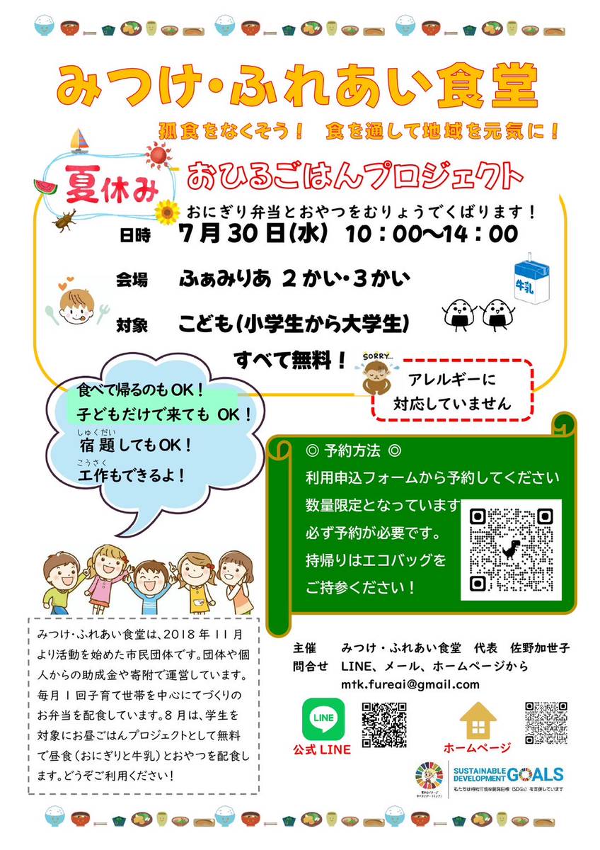 7月30日(水)は、恒例の「夏休みこどものお昼ごはんプロジェクト2025」開催日でした。夏休み中の開催ということで、中学生や高校生、そして大学生のボランティアさんが大活躍のこども食堂でした。
