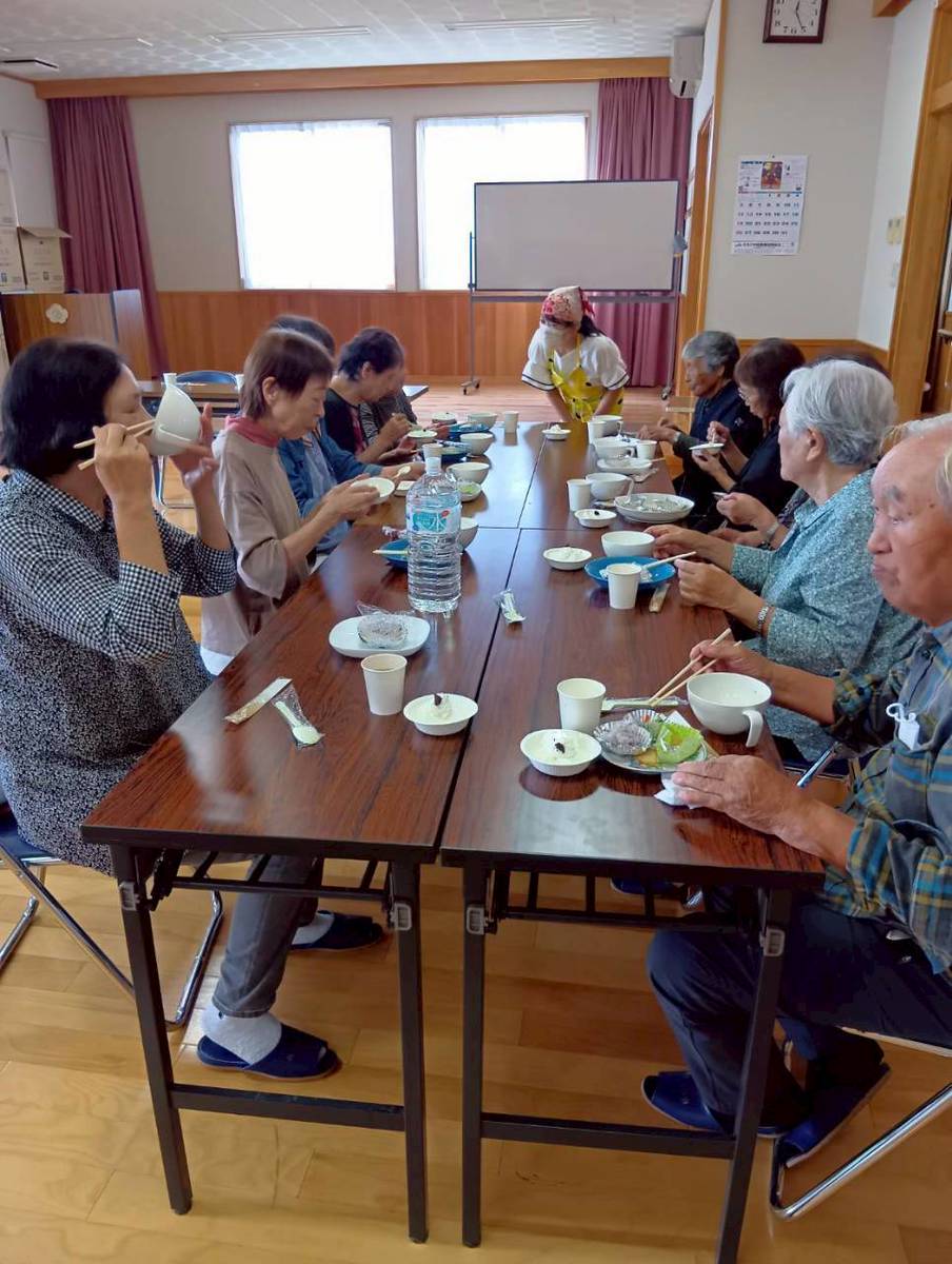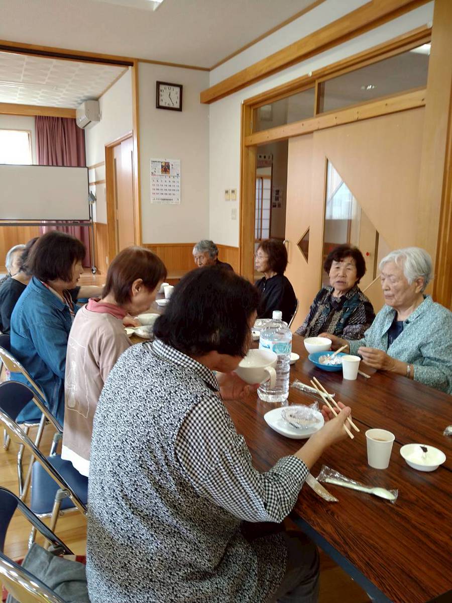 「昨年おみかけしたおじいちゃん、今年も元気で参加してくれるかなぁ・・」 そんな想いもあって、今年も高齢者を対象とした「ふれあい食事会」が開催されました。食事会は、足腰の弱った方々に配慮し送迎バスを使っての開催となりましたが、あらかじめ申込み戴いた22名のみなさん全員がお出で下さいました。(^^)