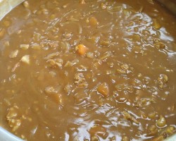 今月はおいしいカレーに、エビフライをプラス。一気にボリュームが出て豪華な一品に仕上がりましたよ。これぞ、嬉しいコラボレーションでした。(^^)v