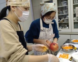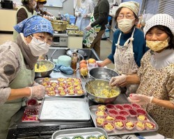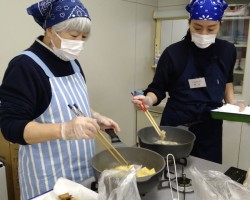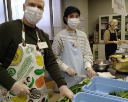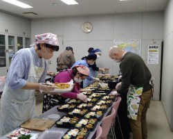 今月の「みつけ・ふれあい食堂」では、新たにおふたりの調理ボランティアさんが加わり、お弁当の盛り付けなどを手伝って戴きました。^ ^