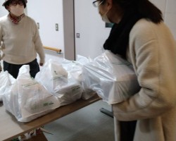 当日は、「うるめのお宿 割烹旅館 原の湯さん」 特製のあったかお弁当を、15世帯のこども達に28食お渡ししました。もちろん、食堂調理ボランティアさん手づくりの「りんごのマフィンカップケーキ」と、「フードバンクみつけ」提供の「じゃがりこ」&「鬼滅の刃×ブルボンプチシリーズ」を添えて。